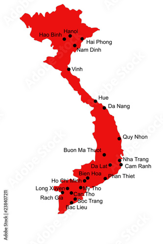 Vietnam Vector Map Major Cities Stock Vector (Royalty Free